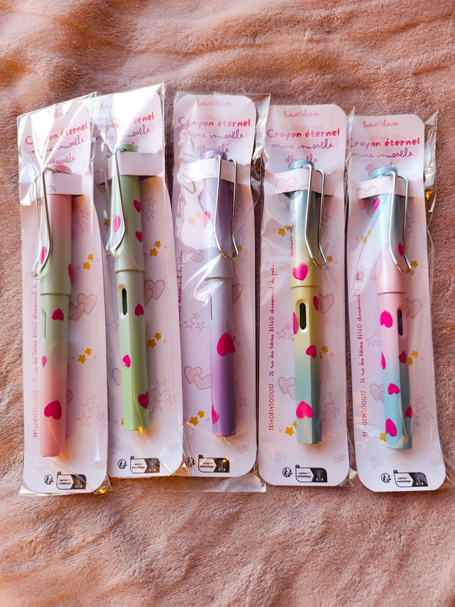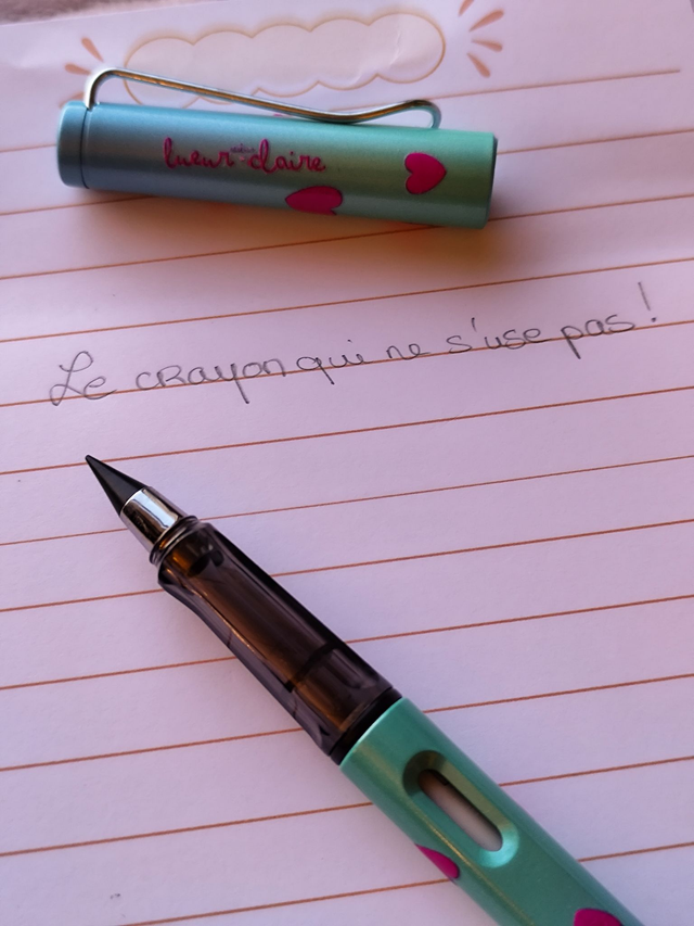 Outre son habillage tout mignon avec ses cœurs roses ou encore ses dégradés de couleurs chatoyantes, la mine de ce crayon est en alliage de métal ultra résistant, ce qui lui vaut une durabilité exceptionnelle. Il représente à lui tout seul l'équivalent de 100 crayons de papier classiques.